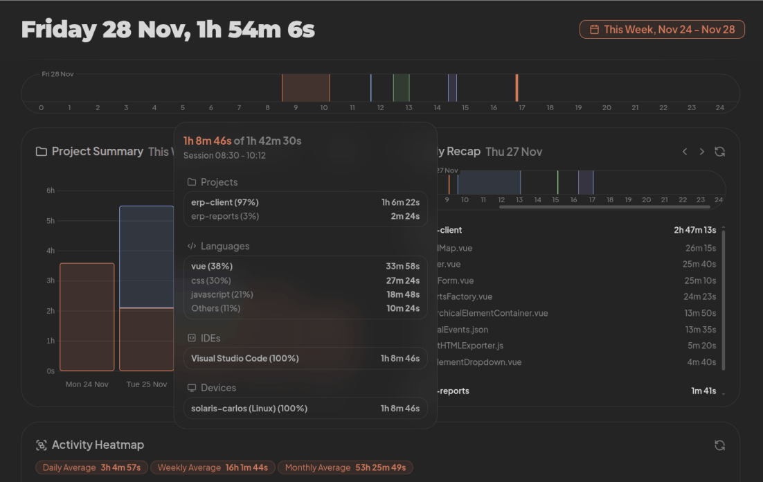 Like a fitness tracker, for developers. TimeFly captures your real coding activity and turns it into deep productivity insights. Built in collaboration with my teammate